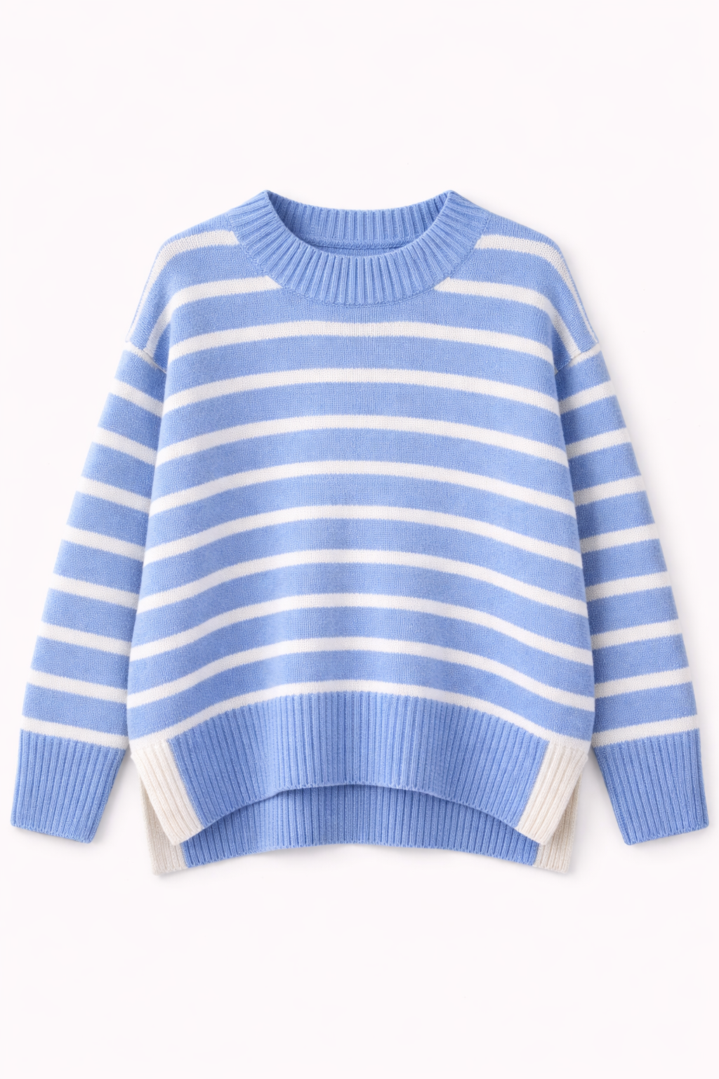 Camisola de malha macia e confortável, com padrão de riscas intemporal que nunca sai de moda. O corte descontraído e a gola redonda garantem um ajuste confortável, tornando esta peça perfeita para o dia a dia.