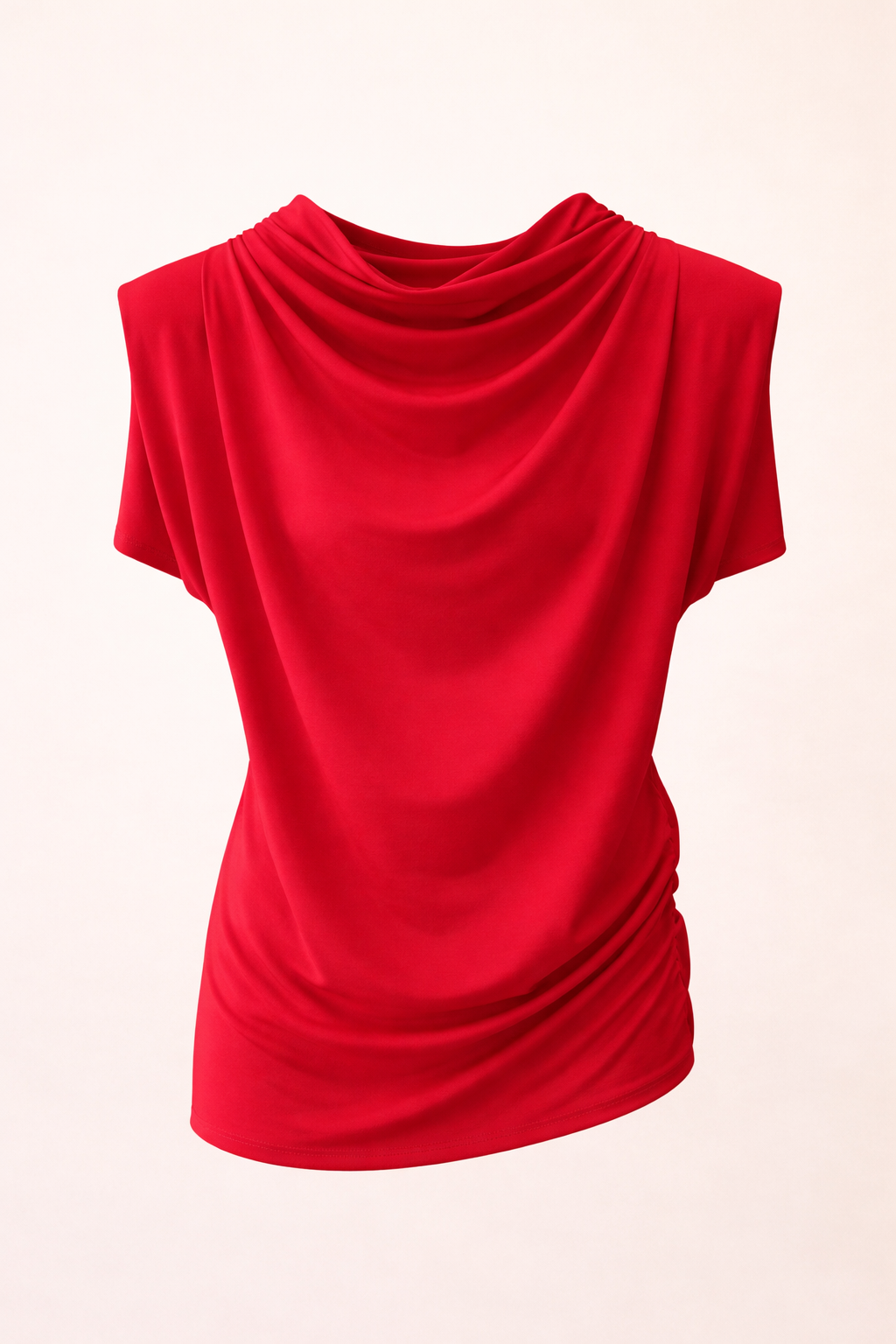Elegant and effortlessly refined, this blouse features a beautifully draped cowl neckline that adds a soft, sophisticated touch to any look. Designed with a relaxed silhouette and subtle side gathering, it gently follows the natural shape of the body while providing exceptional comfort.