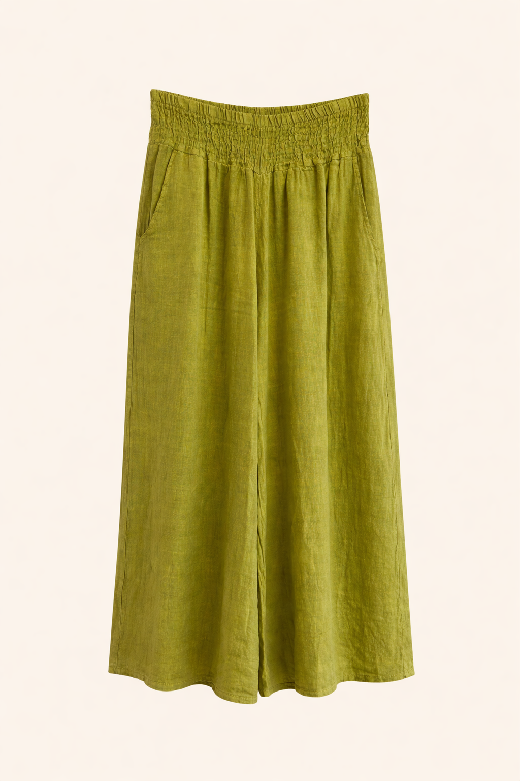 The wide-leg silhouette creates beautiful movement and a flattering drape, while the side pockets add a practical touch. Lightweight and airy, these pants are perfect for warm days, whether styled casually with a simple top or dressed up for a more sophisticated summer look.