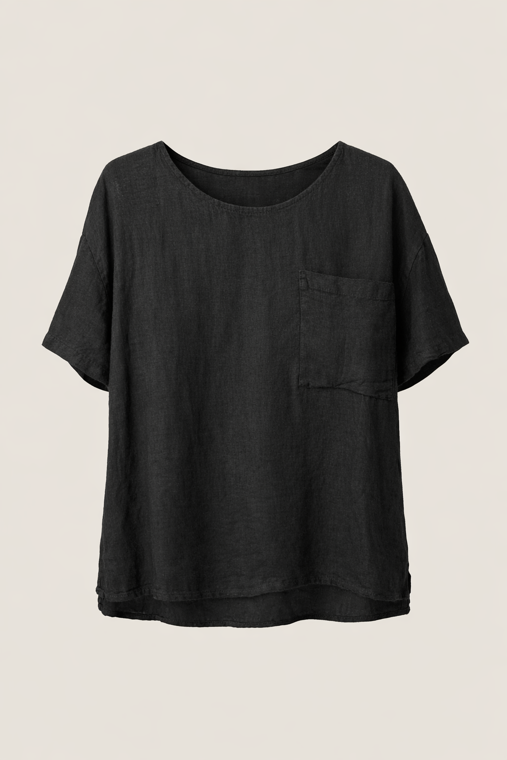Light, effortless, and timeless — the Emilia Linen Blouse is crafted from 100% natural linen, offering breathability and comfort for warm days. Designed with a relaxed silhouette, soft round neckline, and a delicate chest pocket, it combines casual elegance with everyday versatility.