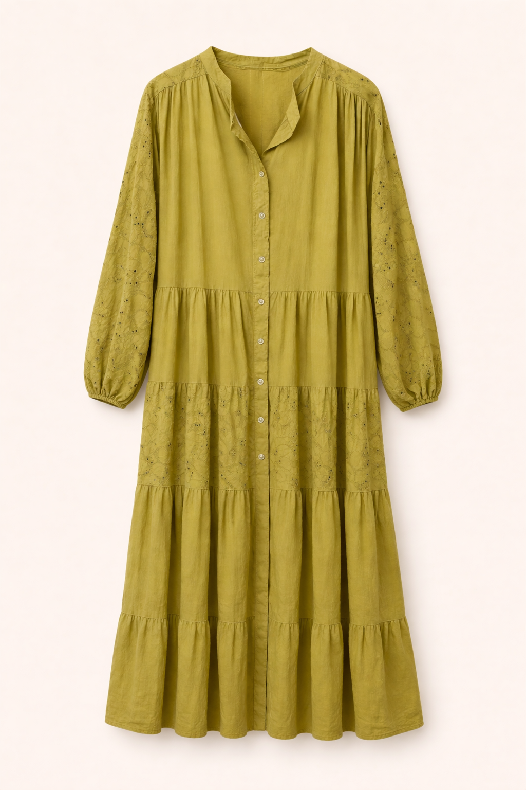 Effortlessly elegant and designed for everyday sophistication, this flowing dress combines comfort with refined detailing. Crafted from a lightweight, breathable fabric, it features a relaxed silhouette that moves beautifully with the body.